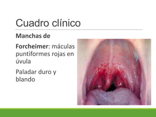 Las manchas rojas en el paladar pueden ser causadas por una variedad de razones diferentes. El examen posterior no reveló otras lesiones presentes. De hecho los pacientes que recibimos con quemaduras no solo tienen esas manchas rojas sino que también tienen el tejido herido. Tipos de puntos rojos o manchas que salen en el paladar. En el caso de esta infección es muy posible que el paladar adquiera un tono blanquecino. Es necesario realizar más investigaciones para determinar si las lesiones orales pueden considerarse un signo de infección por COVID-19. Al haber comido algo muy caliente es posible que te aparezcan puntos rojos en el paladar. Otros síntomas de la faringitis estreptocócica incluyen. Según el tipo de patología la sintomatología será distintaHay manchas rojas en el paladar que pueden manifestarse con dolor mientras que otras serán completamente asintomáticas u otras que pueden molestar ligeramente pero sin suponer una gran molestia.