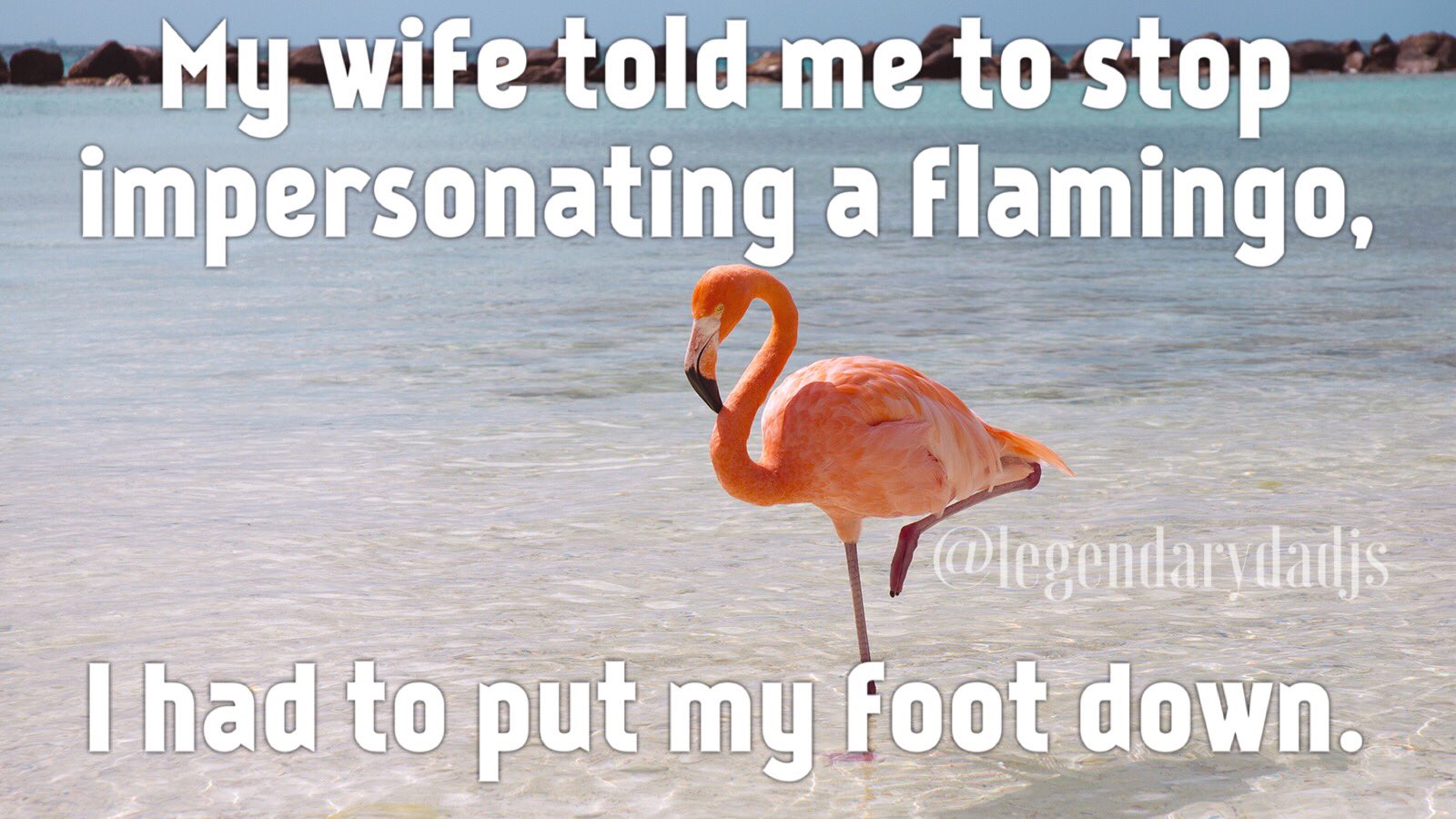 See TOP 20 Flamingo from collection of 44 jokes and puns rated by visitors. My SO told me that I should stop pretending to be a flamingo I had to put my foot down. Dad Jokes and Flamingo Puns Dad jokes frequently are received with an eyeroll or shrug they are either funny in their ridiculousness or they are dismissed.